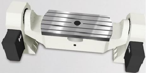 ▶三轴(旋转轴、倾斜轴、支撑轴)皆使用转台轴承,更好的刚性支撑,形变量小;